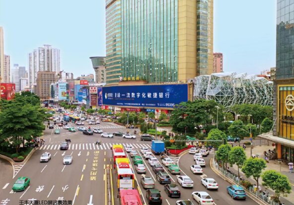廣州壬豐大廈LED廣告屏位于天河路與天河?xùn)|路交界,周邊交通非常發(fā)達,所處的天河路段也是廣州人氣最旺、商業(yè)最繁華的路段之一。