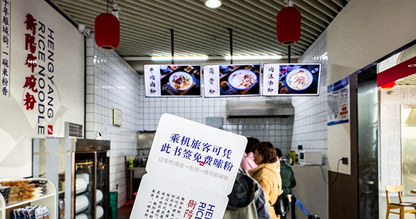 搜索衡陽(yáng)機(jī)場(chǎng)或衡山旅游等話題,最讓人印象深刻的當(dāng)屬衡陽(yáng)機(jī)場(chǎng)的手繪登機(jī)牌和憑登機(jī)牌免費(fèi)嗦粉,該店‘衡陽(yáng)那碗粉’正處于航站樓候機(jī)大廳。地道的衡陽(yáng)風(fēng)味,溫暖的機(jī)場(chǎng)服務(wù),讓旅客們?cè)诤怅?yáng)機(jī)場(chǎng)航站樓頻頻拍照留念分享至社交媒體。