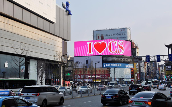 長沙地標LED大屏廣告價格,IFS國金I?CS粉色斑馬線打卡LED廣告應援