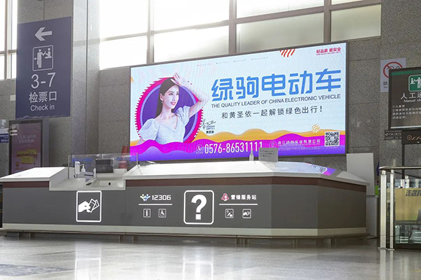 接下來我們跟隨綠駒電動(dòng)車一起欣賞下溫嶺站候車大廳檢票口LED大屏廣告的風(fēng)采~