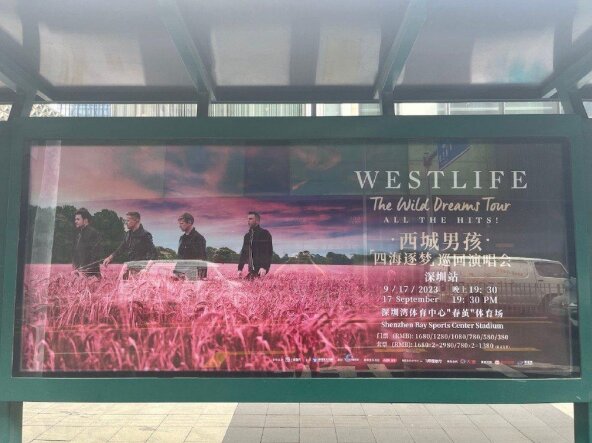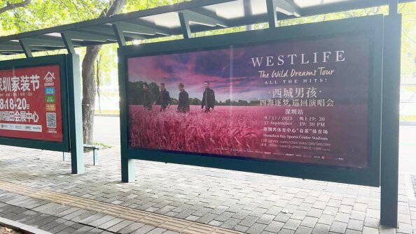 深圳公交候車(chē)亭廣告2周起做,支持短期亦可長(zhǎng)期發(fā)布廣告,是演唱會(huì)、影視劇等文化活動(dòng)宣傳的不二之選。以粉色麥田為背景的WESTLIFE西城男孩深圳巡回演唱會(huì)宣傳海報(bào)上刊深圳大街小巷的公交候車(chē)亭廣告。第一戶(hù)外小編通過(guò)此次演唱會(huì)廣告案例帶大家了解下深圳候車(chē)亭燈箱廣告。