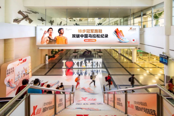 廈門機(jī)場(chǎng)到達(dá)層國(guó)內(nèi)到達(dá)廳下行扶梯末端巨屏全彩LED大屏廣告
