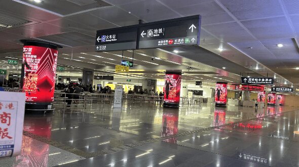 媒體位置:進(jìn)出站換乘大廳,高鐵地鐵5號線出租換乘大廳區(qū)域