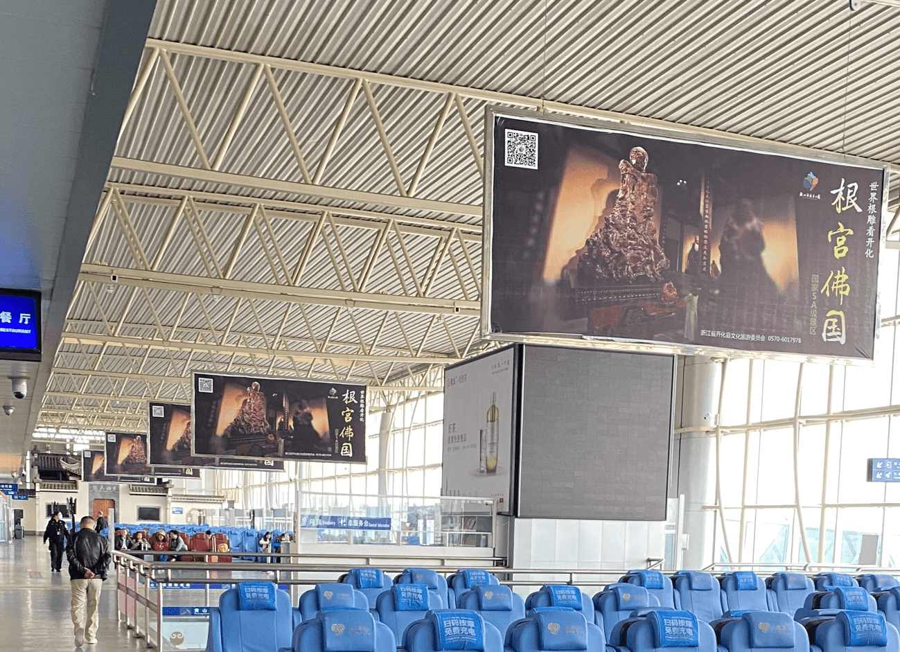 黃山機場國內(nèi)出發(fā)值機大廳安檢上方LED大屏廣告