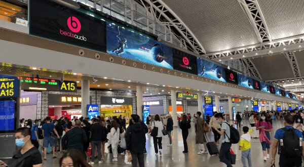 廣州南站候車大廳LED大屏廣告價格收費多少?廣州南高鐵站廣告案例