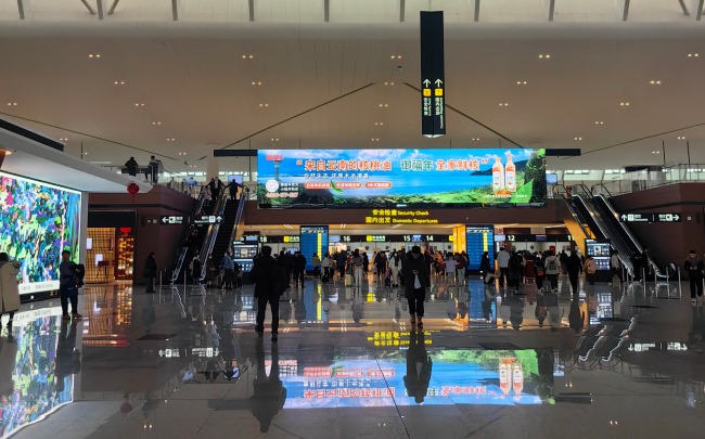 成都天府機(jī)場T2四層出發(fā)大廳安檢前LED大屏廣告