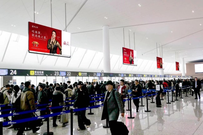 成都天府機(jī)場T2四層安檢大廳入口正上方LED大屏廣告