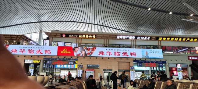 長沙南站候車大廳候車層檢票口上方LED大屏廣告