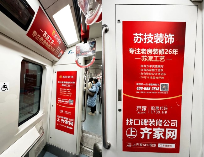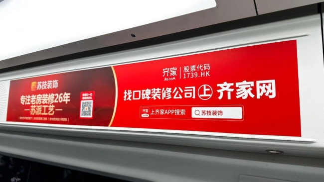 北京地鐵車廂內(nèi)多了一抹醒目的紅色,“上齊家網(wǎng)找裝修公司就搜蘇技裝飾”。蘇技裝飾北京地鐵廣告重磅上線啦!本次是以最流行的地鐵車門廣告形式,選取5號線、10號線——北京地鐵人流量大的主要線路,借勢打造蘇技裝飾高品質(zhì)、好口碑的品牌記憶點。地鐵乘客平均乘車時間近半個小時,因此車內(nèi)媒體擁有最長閱讀時間,相當于在戶外移動的平面雜志,可完整詳盡的傳達廣告信息,是最佳的閱讀型媒體。同時,車內(nèi)媒體還具有獨占性強,干擾度小,媒體數(shù)量多的優(yōu)勢,是品牌傳播、信息傳遞的精選媒體。