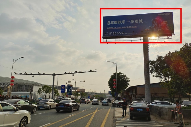 媒體優(yōu)勢:該大牌廣告坐立虎門鎮(zhèn)高鐵站主出入口,紅綠燈路口處,等候車輛正對廣告牌。