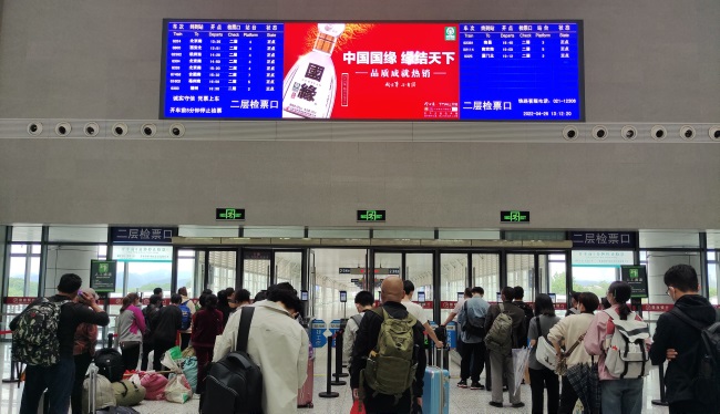 媒體位置:一層進(jìn)站大廳/二層候車大廳檢票口上方