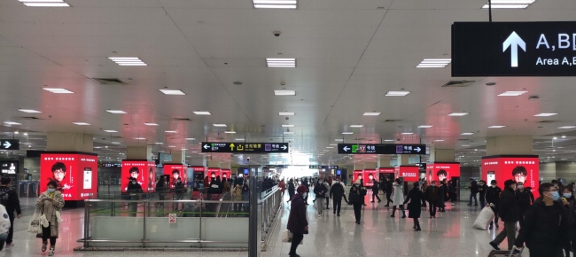 上海虹橋站出站換乘大廳包柱LED大屏廣告