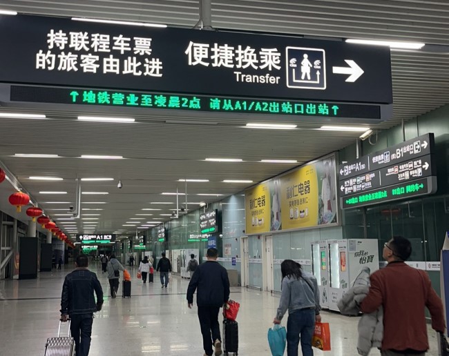 深圳北站到達(dá)層出站通道內(nèi)側(cè)落地?zé)粝鋸V告