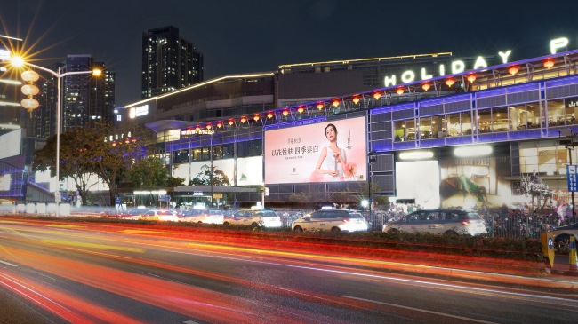 深圳南山益田假日廣場戶外LED大屏廣告是全深圳唯一一塊集“旅游、SHOPPING MALL、城市主干道”三位一體的LED大屏。華僑城商圈以購物、旅游、休閑為特色,益田假日廣場位于華僑城商圈核心地段,南接世界之窗,北倚歡樂谷,及錦繡中華等大型主題樂園,擁有華南地區(qū)第一家同時也是深圳唯一一家蘋果旗艦直營店坐落于此,周邊生態(tài)寫字樓、五星級酒店鱗次櫛比。