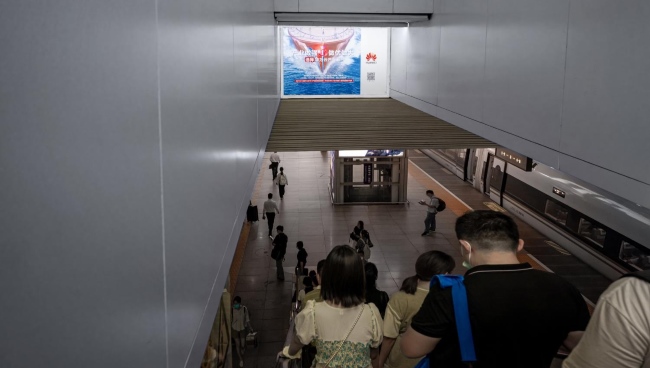 北京南站出發(fā)層進(jìn)站站臺(tái)楣頭看板廣告