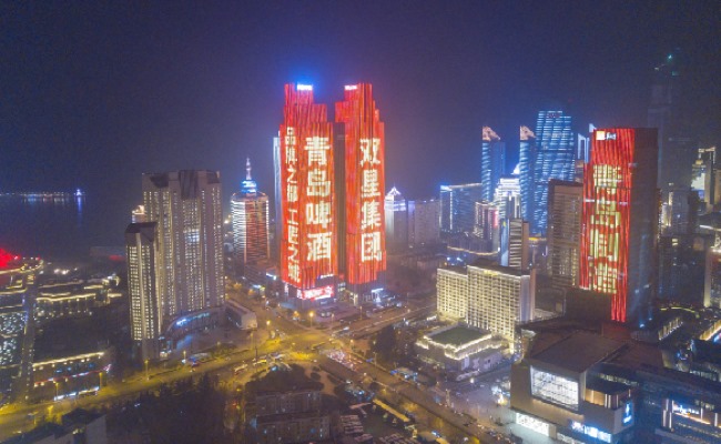 青島五四廣場樓體燈光秀廣告投放,青島地標雙子座大屏廣告價格