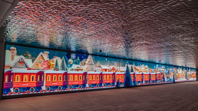 蘇州水上光影長(zhǎng)廊LED大屏廣告36米超長(zhǎng)橫屏形成“視覺長(zhǎng)廊”,4K動(dòng)態(tài)畫面配合橋底弧形結(jié)構(gòu),營(yíng)造包裹式觀感,夜間亮化后可視距離超500米,品牌記憶度較普通LED提升60%。北岸連廊連接圓融天幕東街與西街(日均客流量超8萬(wàn)人次),南岸連廊直通久光百貨與圓融廣場(chǎng)(日均客流量超10萬(wàn)人次),LED橫屏橫跨36米,雙屏展示覆蓋雙向客流。