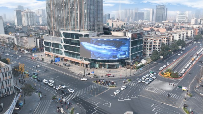 成都未來中心戶外LED大屏廣告位于蜀都大道與一環(huán)路十字路口未來中心樓體外立面以及紅綠燈上方,覆蓋多方向車道及人行天橋,車流緩行(紅燈等待90秒)與行人駐留(日均停留5-8分鐘)形成強(qiáng)制觸達(dá),品牌信息接收深度倍增。橫長近50米,高度超18米的超清曲面大屏總面積達(dá)928㎡,可呈現(xiàn)裸眼3D廣告畫面,采用多視點(diǎn)成像技術(shù),無需輔助設(shè)備即可呈現(xiàn)立體破屏效果,可視距離超500米,視覺沖擊力較傳統(tǒng)LED提升200%;