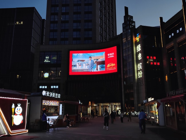 上海曹楊路綠地繽紛城外墻LED大屏廣告占據(jù)建筑外立面黃金位置,正對曹楊路雙向車流及人行天橋,實現(xiàn)“車行+步行”雙重視覺覆蓋。節(jié)假日及周末時段,繽紛城客流量峰值可達(dá)8萬人次/天,疊加商圈主題活動引流,廣告觸達(dá)效率提升40%以上。139.5㎡曲面巨幕尺寸形成超視距傳播效應(yīng),500米外仍可清晰辨識畫面內(nèi)容,視覺沖擊力較常規(guī)樓宇屏提升3倍,強(qiáng)化消費決策敏感時段的傳播效能。