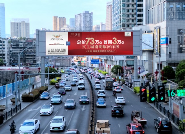 貴陽北京西路天橋LED大屏廣告處觀山湖區(qū)與老城區(qū)主干道交匯處,日均雙向車流量超15萬輛,覆蓋通勤、商業(yè)、居住三類核心人群。西向360㎡巨屏精準(zhǔn)輻射觀山湖區(qū)往市區(qū)方向車流,觸達(dá)金融城、會(huì)展中心等高凈值商務(wù)人群;東向272㎡屏攔截市區(qū)往觀山湖區(qū)方向車流。今天給大家介紹下位于貴陽戶外LED大屏廣告價(jià)格和熱門位置推薦。