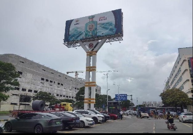 佛山順德新桂路和樂家居電商園前雙面立柱大牌廣告總面積達126.88㎡的雙面大牌形成產(chǎn)業(yè)帶視覺制高點,相當于并列4臺集裝箱貨車體量;18米高空設置實現(xiàn)俯視性視覺統(tǒng)治,輻射周邊物流園區(qū)車輛,雙面畫面可分別針對進場客群推送新品資訊、離場客群強化采購記憶,形成決策閉環(huán)。每日數(shù)萬采購商進出形成的商貿客群動線,使廣告獲得產(chǎn)業(yè)集體潛意識認可,B2B品牌信任轉化率提升45%。