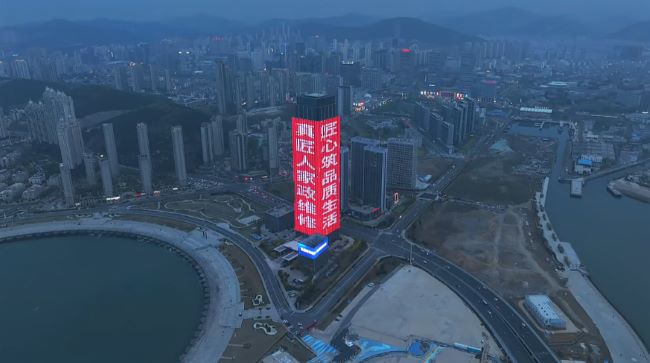 大連南海中心A座地標(biāo)燈光秀廣告投放,大連樓體LED大屏廣告