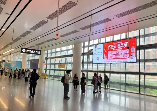 深圳福田口岸二、三樓出入境大廳墻面上方LED大屏廣告位于墻面高處,與旅客行進方向自然契合,有效規(guī)避遮擋。單塊10.59㎡的尺寸在挑高空間內(nèi)形成視覺壓迫感,結(jié)合10塊屏組網(wǎng),總面積達105.9㎡,構(gòu)建立體化視覺矩陣旅客。通關(guān)過程中平均停留時間較長。福田口岸入境廳與出境廳LED大屏套裝廣告雙點位布局,同步觸達雙向客流,單日總曝光量超1200次/天。