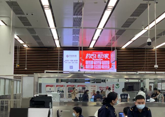 深圳福田口岸二、三樓出入境大廳墻面上方LED大屏廣告