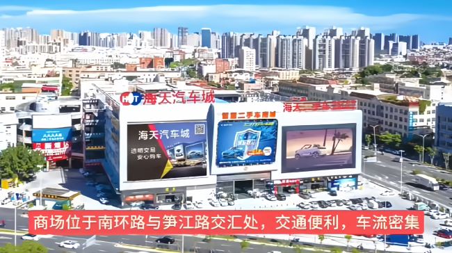 泉州海天汽車(chē)城位于南環(huán)路、池峰路、筍江路三大主干道交匯處,形成區(qū)域性交通樞紐,具備顯著的流量?jī)?yōu)勢(shì),作為鯉城區(qū)西南部重要交通節(jié)點(diǎn),日均承接過(guò)境車(chē)流、物流運(yùn)輸及區(qū)域性消費(fèi)車(chē)流。三路交匯形成270°視野范圍,確保各方向來(lái)車(chē)均能有效識(shí)別廣告內(nèi)容。今天給大家介紹下泉州戶外LED大屏廣告價(jià)格和熱門(mén)位置推薦。